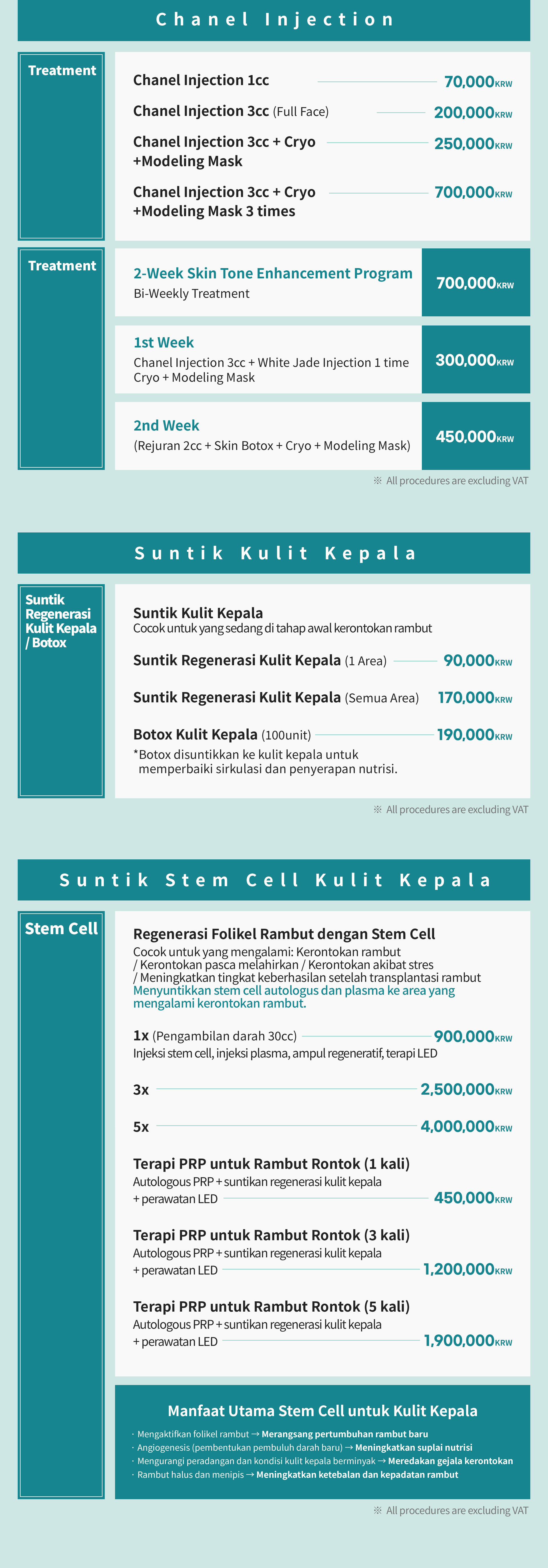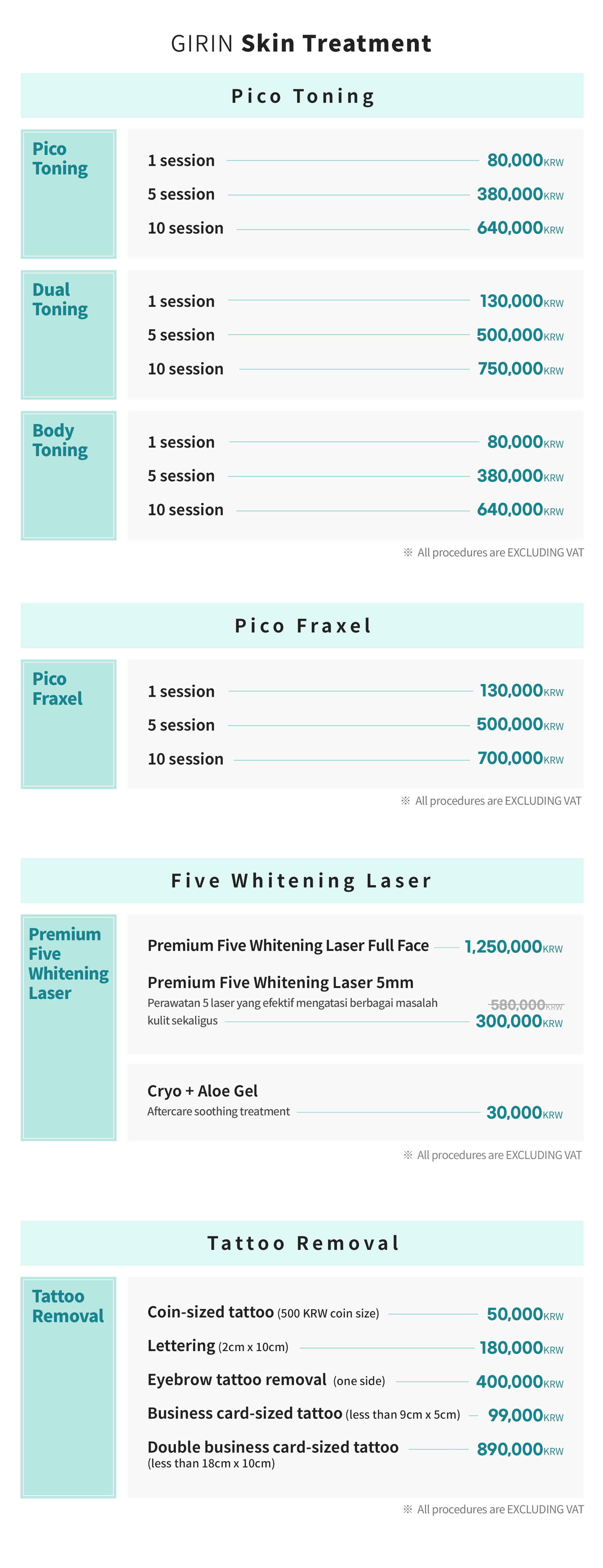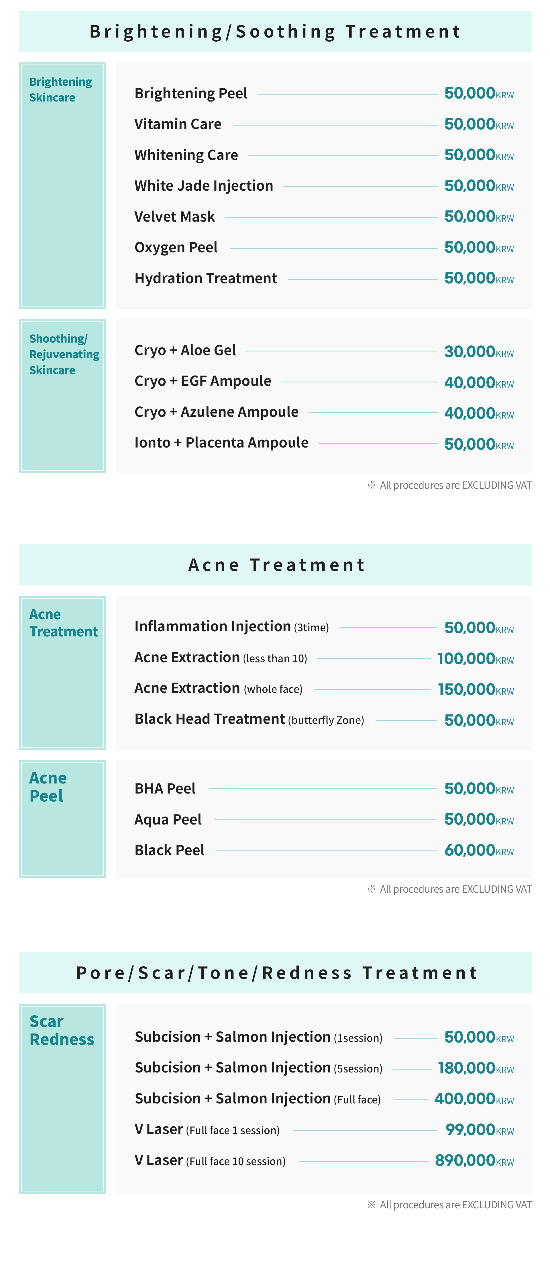 • Aesthetic Price List